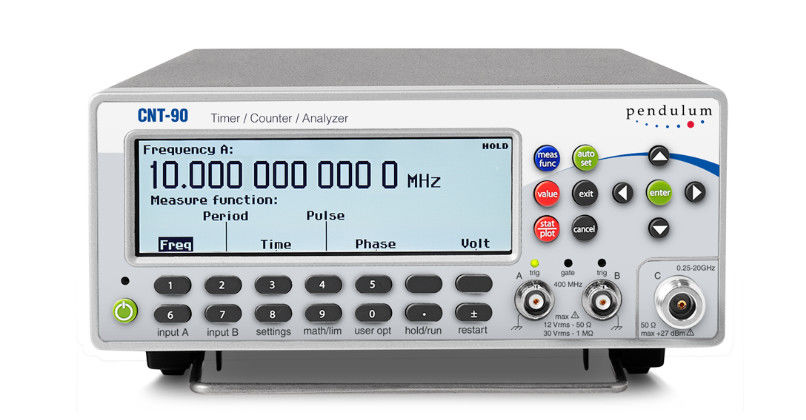 The Pendulum CNT-90 timer/counter/analyzer is an ultimate tool for measurement, analysis and calibration of Frequency, Time Interval or Phase. The CNT-90 is a high-performance counter with a fast measurement speed to 250,000 measurements/s, and time interval measurement resolution to 100 ps. The CNT-90 offers ease-of-use including graphical display and improved display and improved control over measurement at an outstanding price.